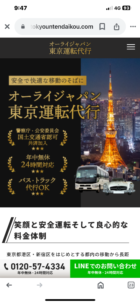 東京23区で運転代行始めますオーライジャパン東京運転代行です。港区をはじめ、新宿及び23区近郊で24時間営業いたします。よろしくお願いいたします